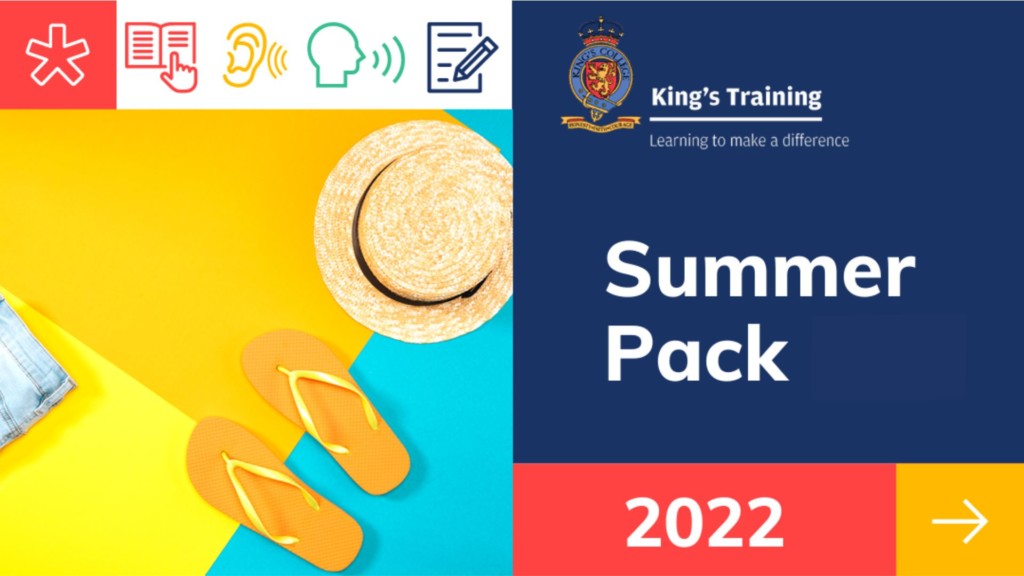 Another year of language learning draws to an end and our thoughts turn to the summer. A time for holidays, to change pace, to relax a bit more and take a break from our routines. That is absolutely positive and necessary, but our message to you is not to forget your language learning during the summer! The really successful language learner makes the language a part of their life and looks for opportunities to engage with it and use it. Click on the picture below to access our fantastic 2024 summer pack of online English activities to do just that, and keep an eye on your inbox for our newsletter for more learning tips. From all of us at King’s Training, have a great summer – but remember to keep practising 😉