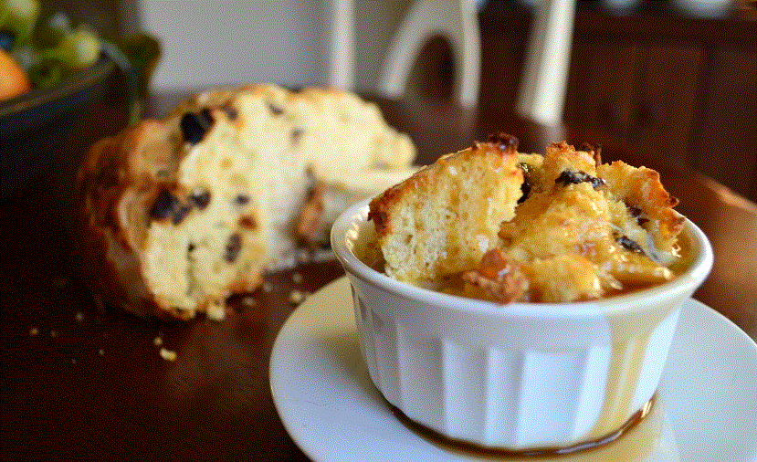 Serve by running a butter knife around the inside of the ramekin and invert the ramekin over plate to remove pudding from ramekin. Garnish with sauce and serve. Or serve in ramekins with sauce on the side. Recipe from http://www.chattygourmet.com/archives/irish-soda-bread-pudding/