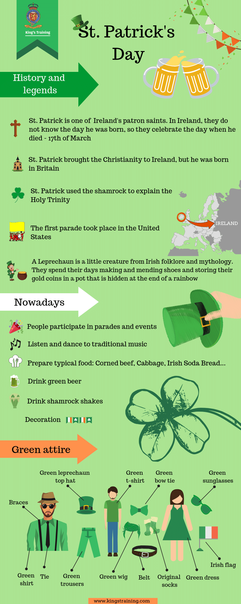 ¿Tienes ya planes para el día de St Patrick? Prepárate para esta fecha con King’s Training aprendiendo vocabulario sobre Irlanda y esta celebración.