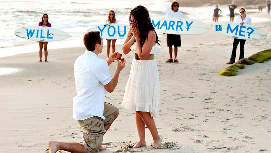 Traditionally the first step towards marriage is getting engaged. In days gone by, a man would ask his prospective father-in-law for his daughter’s hand in marriage. Nowadays, people tend just to propose or pop the question directly. The proposal is then followed by an engagement (perhaps marked by the purchase of an engagement ring). The bride and groom-to-be are for the moment fiancés (this is a French term, so he’s a fiancé and she’s a fiancée).